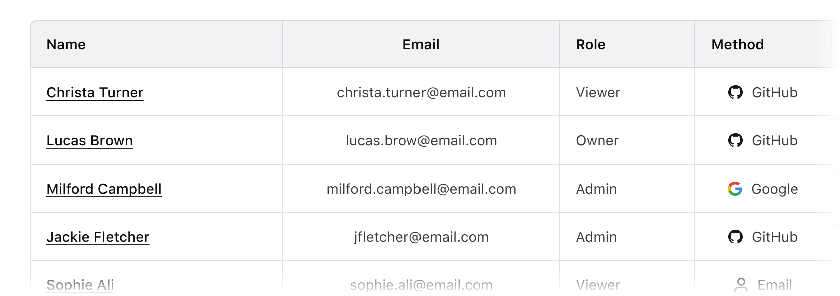 Multi-select allows users to select multiple rows to perform bulk actions, such as deleting or exporting data. The Advanced Table maintains selection states across pagination and filtering, ensuring consistency when interacting with large datasets. For more details, check out the Multi-Select Table Pattern.