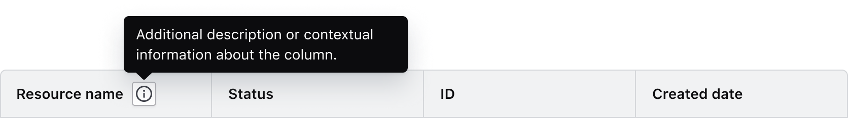 Labels within the Advanced Table column should be clear, concise, and straightforward. In the case that more context or details are necessary, a Tooltip can be used in conjunction with the label but should be used sparingly and as a last resort.